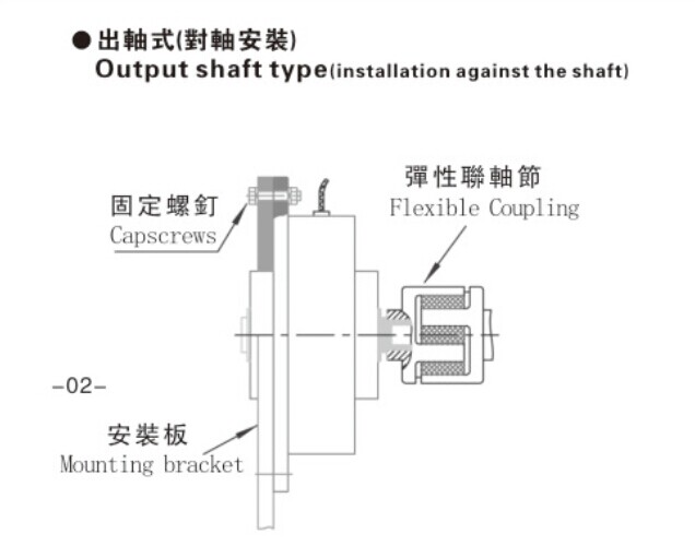 在安裝單軸磁粉制動(dòng)器的時(shí)候,請(qǐng)將托架嵌合入安裝板并固定好,必須使用彈性聯(lián)軸器連接制動(dòng)軸和負(fù)載軸,且此時(shí)軸間的同同心度、直角度等必須控制所使用彈性聯(lián)軸節(jié)的允許范圍以內(nèi)。安裝尺寸規(guī)格圖上如下: