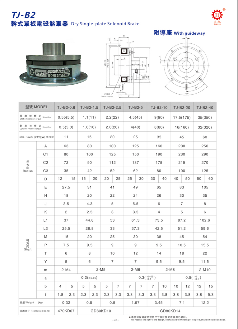 TJ干式單片電磁剎車器(導(dǎo)...產(chǎn)品簡介: 天機(jī)傳動(dòng)該型(TJ-B2)型TJ干...