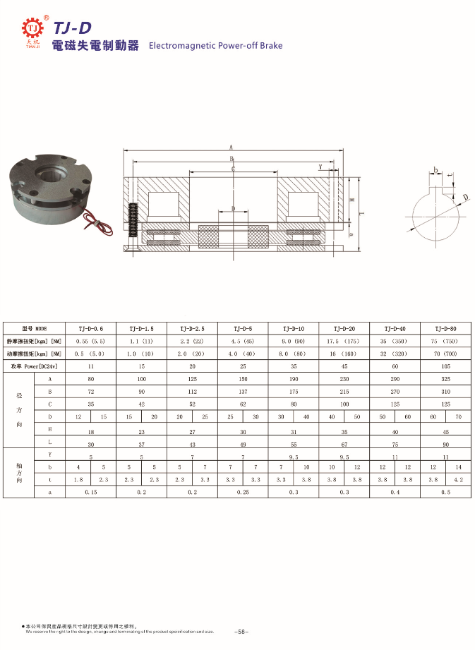 TJ-D電磁失電制動器安裝尺寸及規格如下: