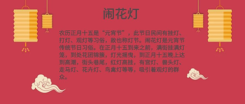 元宵節(jié),又稱上元節(jié)、小正月、元夕或燈節(jié),是中國的傳統(tǒng)節(jié)日之一,時(shí)間為每年農(nóng)歷正月十五。元宵佳節(jié)至,天涯共此時(shí)。元宵節(jié)是一年的第一個(gè)月圓之夜,也是大地回春的夜晚。這一天紅紅火火鬧元宵,既有闔家歡樂之情,又有慶賀新春延續(xù)之意。人們?cè)谶@一天也會(huì)進(jìn)行觀燈會(huì),猜燈謎,吃元宵等活動(dòng)。