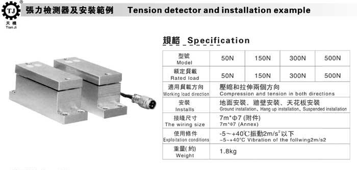 張力傳感器(張力檢測器)安裝尺寸規格、范例如下圖,如需了解更多點擊參考張力傳感器安裝方式及注意事項。